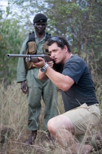 IAPF Founding Director Damien Mander demonstrates weapon handling to his rangers. An ex-Royal Australian Clearance Diver and Special Forces commando, Mander’s resume includes training the Iraqi police as a security contractor in the Middle East. In 2009 he set up the International Anti Poaching Foundation, an Australian charity, to contribute his military expertise to the fight against poaching. “Whilst the scenario is a little bit different here than it is in Baghdad, a lot of the principles are the same. It’s the frontline,” he says.